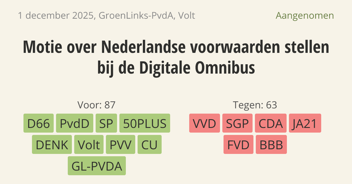 Motie van de leden Kathmann en Dassen over Nederlandse voorwaarden stellen bij de Digitale Omnibus
