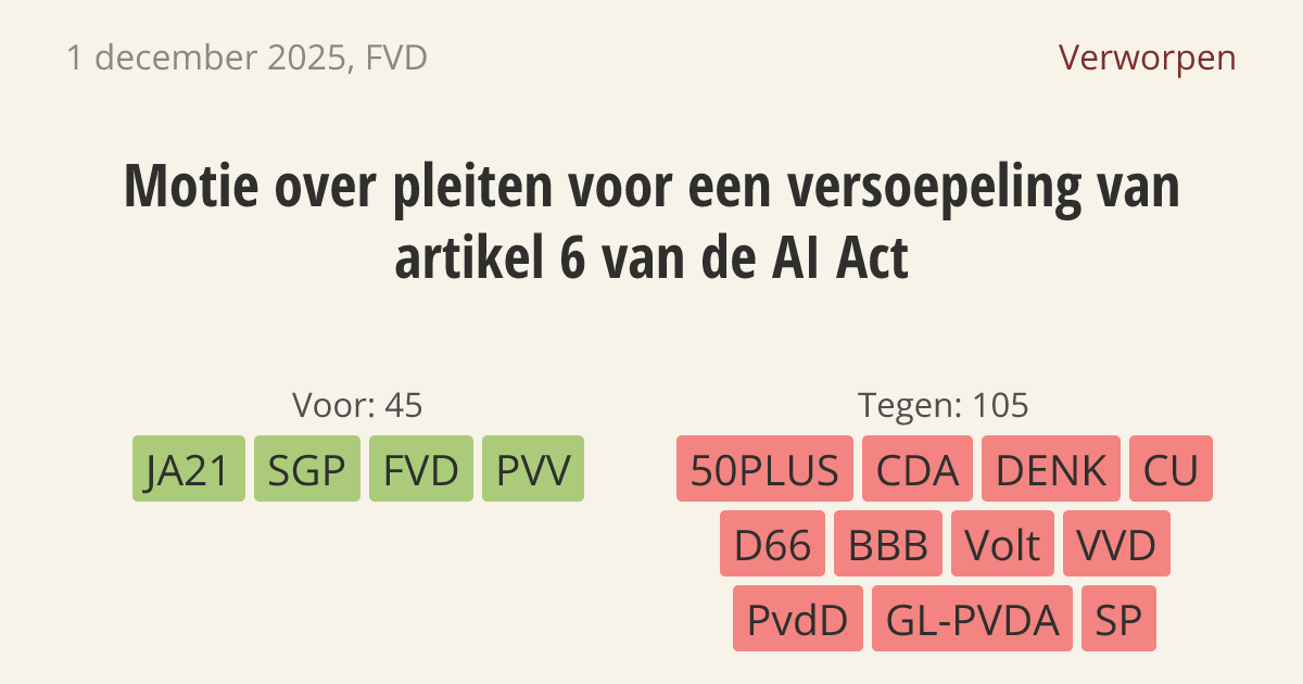 [Motie van het lid Frederik Jansen over pleiten voor een versoepeling van artikel 6 van de AI Act]