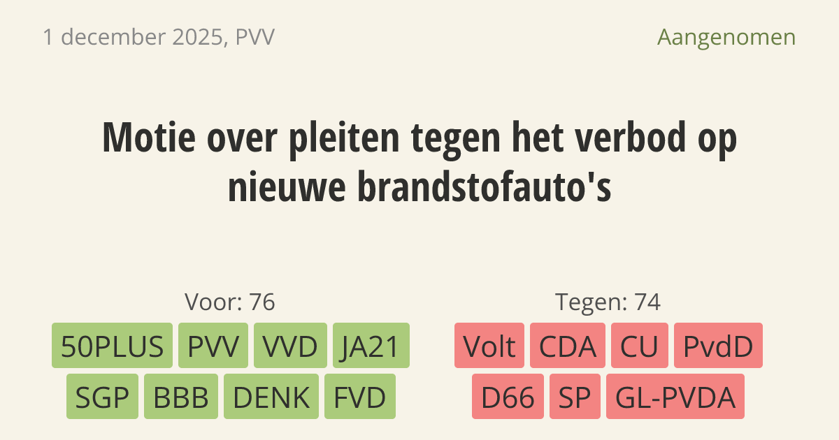 [Motie van het lid Heutink over pleiten tegen het verbod op nieuwe brandstofauto's ]