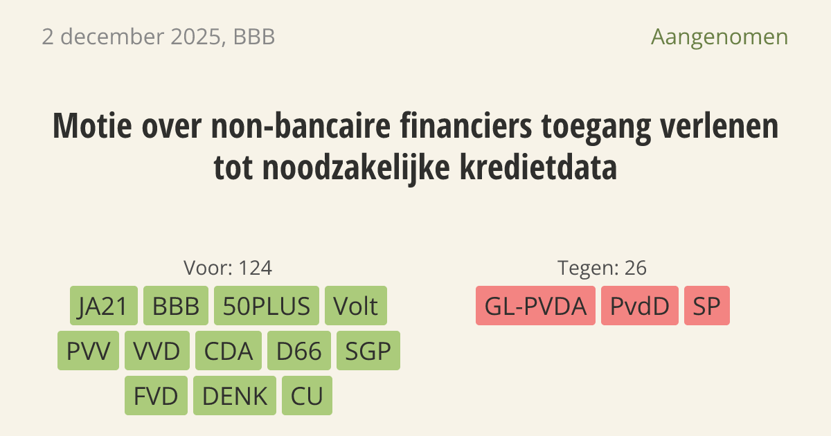 [Motie van het lid Vermeer over non-bancaire financiers toegang verlenen tot noodzakelijke kredietdata ]