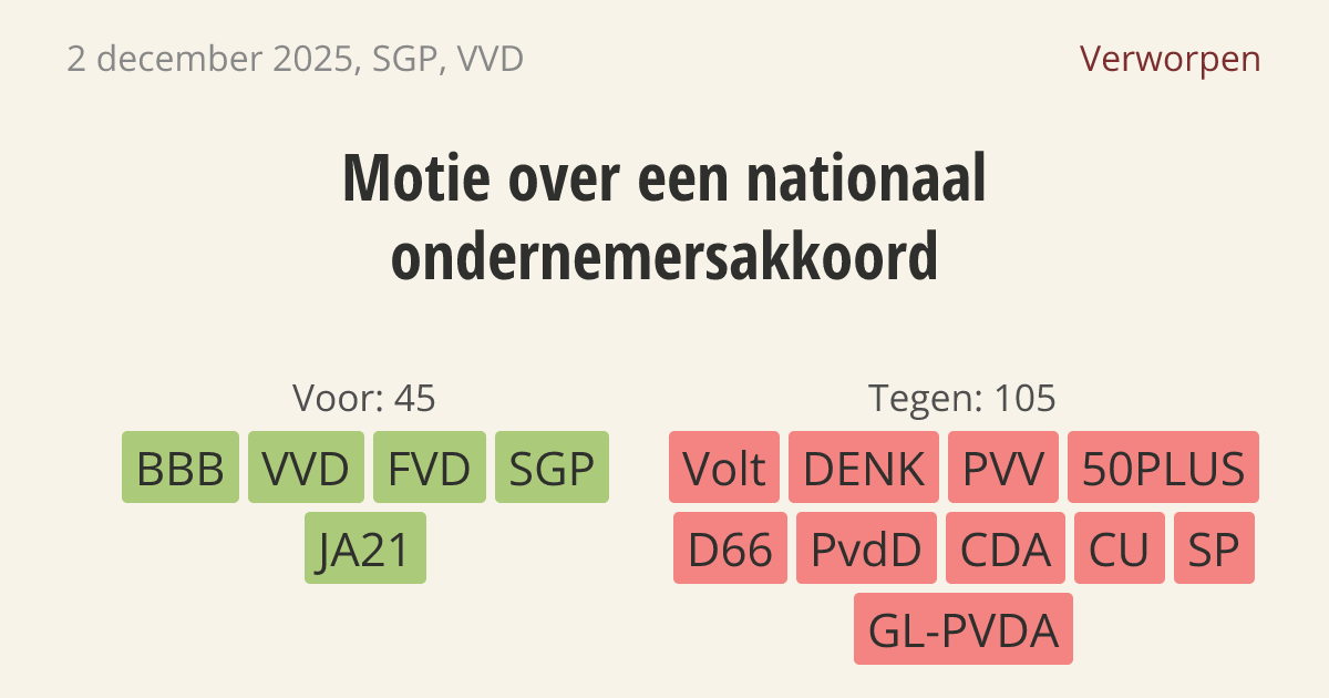 Verworpen op 9 december: 45 - 105