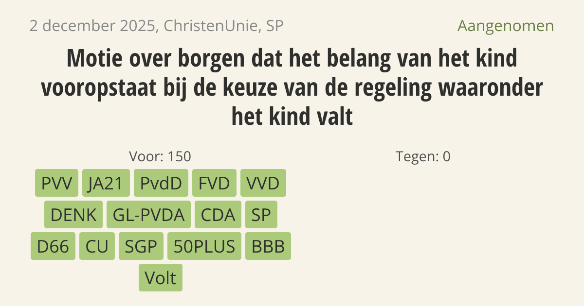 Aangenomen op 16 december: 150 - 0