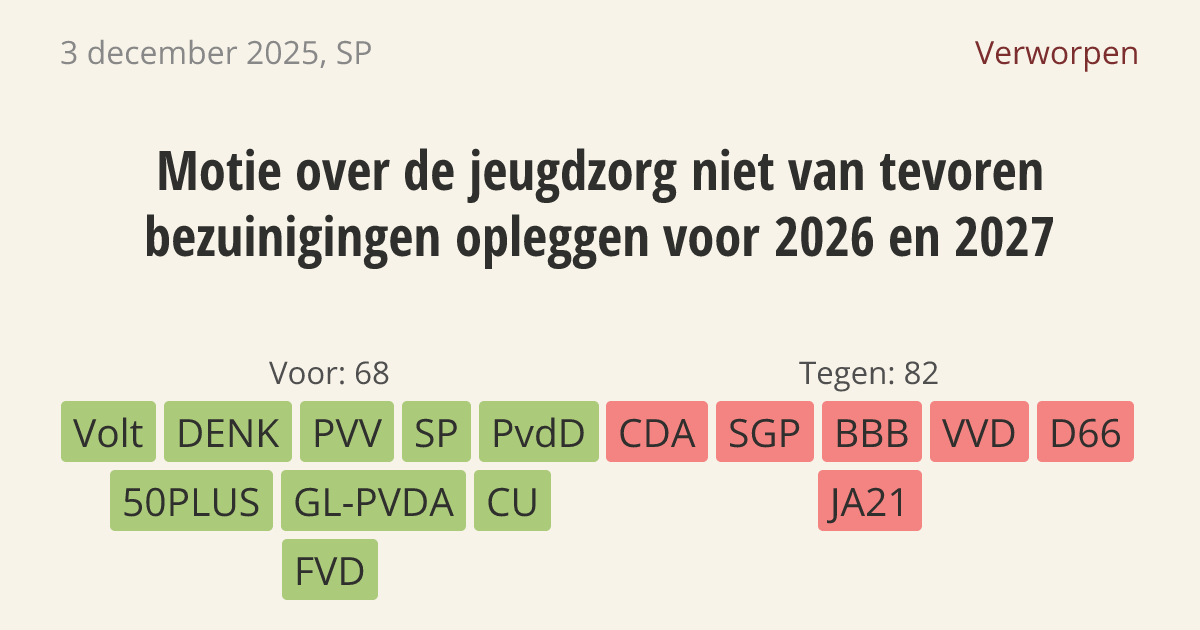 Motie van het lid Dobbe over de jeugdzorg niet van tevoren bezuinigingen opleggen voor 2026 en 2027