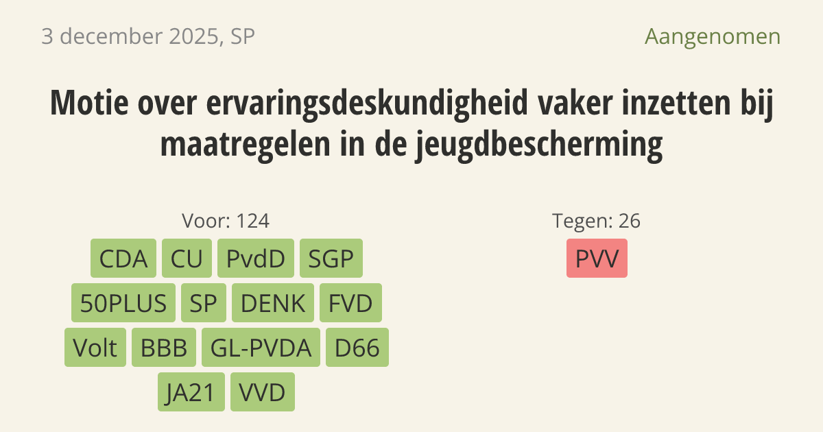 [Motie van het lid Dobbe over ervaringsdeskundigheid vaker inzetten bij maatregelen in de jeugdbescherming ]