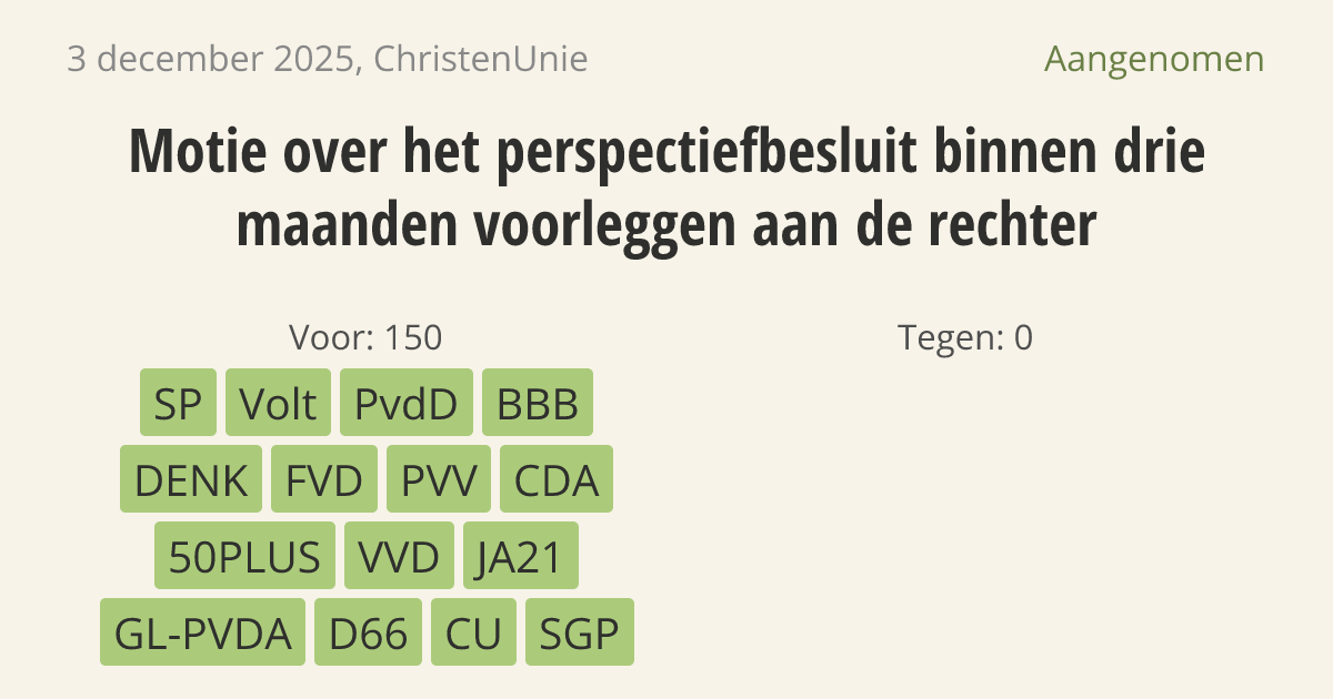 Aangenomen op 9 december: 150 - 0
