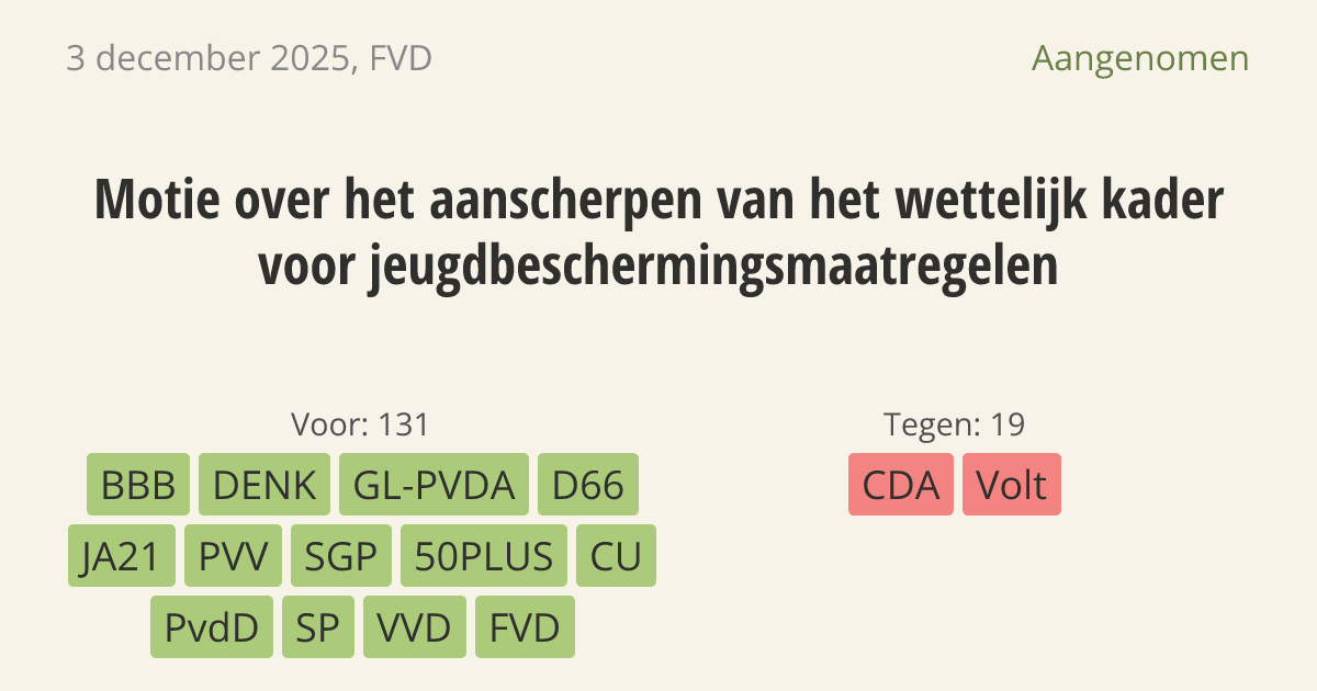 [Motie van het lid Van Houwelingen over het aanscherpen van het wettelijk kader voor jeugdbeschermingsmaatregelen ]