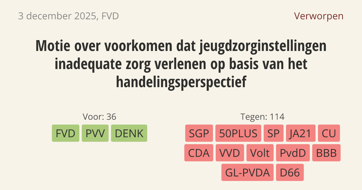 [Motie van het lid Van Houwelingen over voorkomen dat jeugdzorginstellingen inadequate zorg verlenen op basis van het handelingsperspectief ]