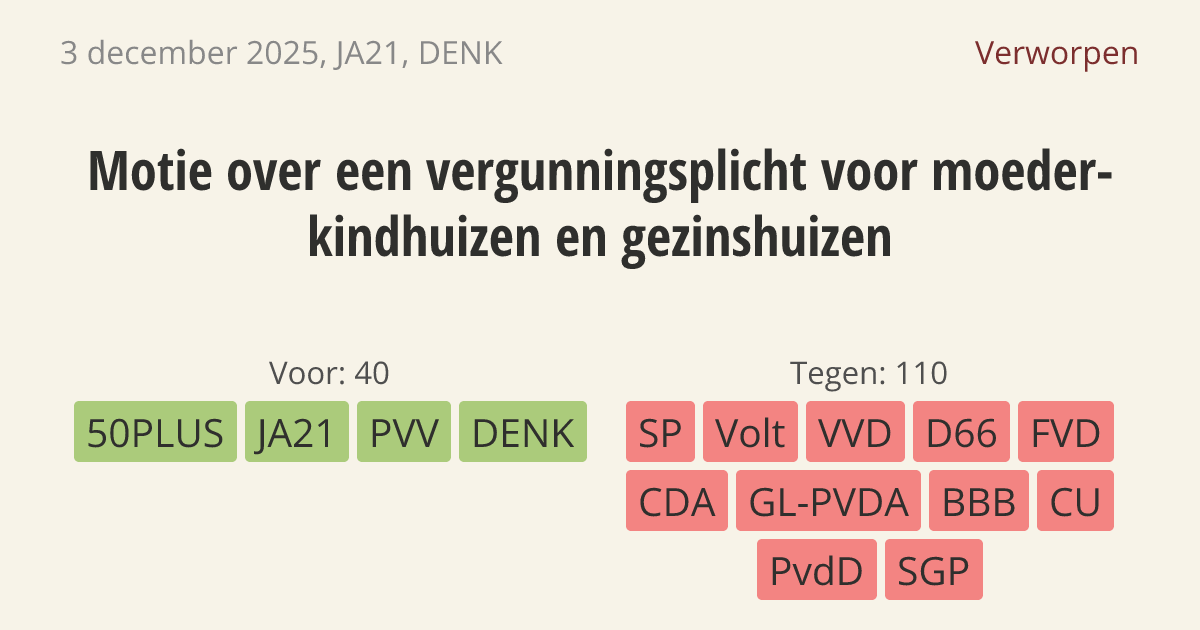 verzoekt de regering een vergunningsplicht in te stellen voor moederkindhuizen en gezinshuizen.]