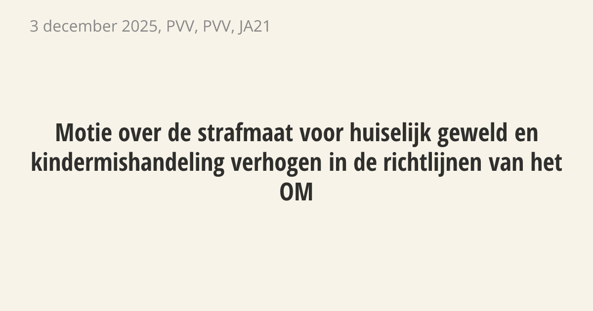 Motie van het lid Van Meetelen c.s. over de strafmaat voor huiselijk geweld en kindermishandeling verhogen in de richtlijnen van het OM (PVV, PVV, JA21)