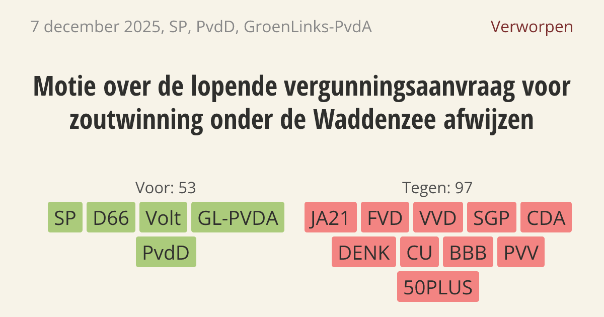 Motie van het lid Beckerman c.s. over de lopende vergunningsaanvraag voor zoutwinning onder de Waddenzee afwijzen