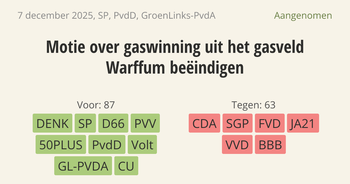 aangenomen waarin de regering wordt verzocht geen nieuwe winning uit