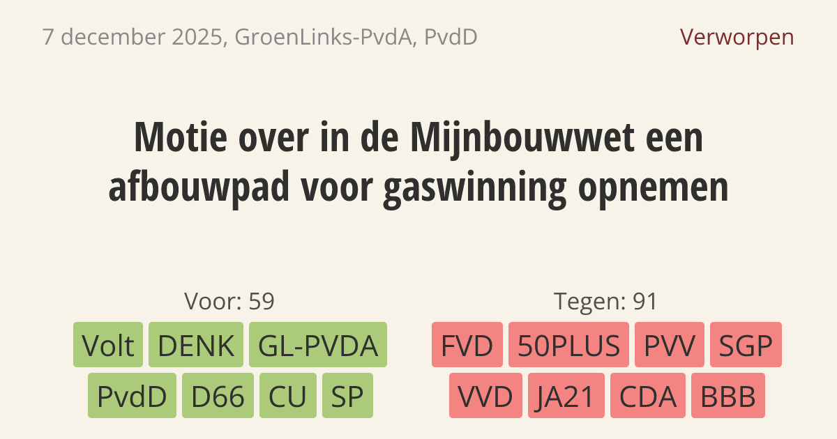 [Motie van de leden Van Oosterhout en Teunissen over in de Mijnbouwwet een afbouwpad voor gaswinning opnemen]