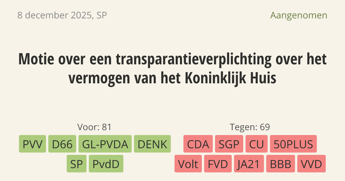 Aangenomen op 16 december: 81 - 69