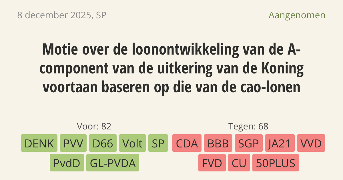 Motie van het lid Beckerman over de loonontwikkeling van de A-component van de uitkering van de Koning voortaan baseren op die van de cao-lonen