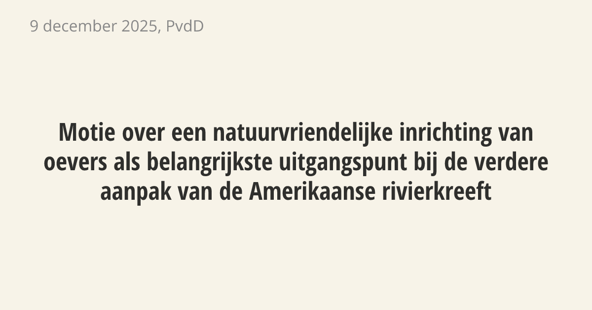 Motie van het lid Kostic over een natuurvriendelijke inrichting van oevers als belangrijkste uitgangspunt bij de verdere aanpak van de Amerikaanse rivierkreeft (PvdD)