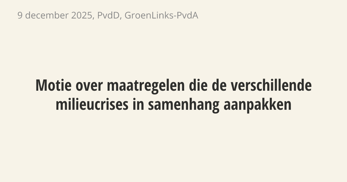 Motie van de leden Kostic en Zalinyan over maatregelen die de verschillende milieucrises in samenhang aanpakken