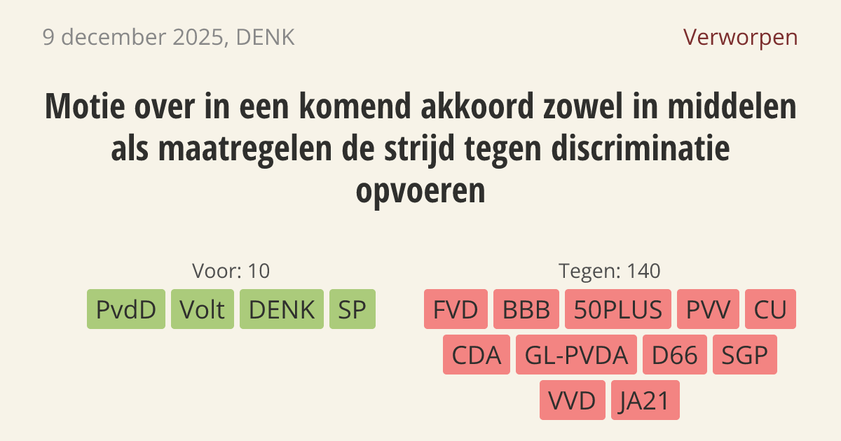Verworpen op 10 december: 10 - 140
