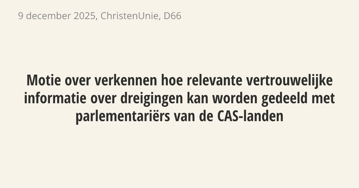 Motie van de leden Ceder en Bamenga over verkennen hoe relevante vertrouwelijke informatie over dreigingen kan worden gedeeld met parlementariërs van de CAS-landen