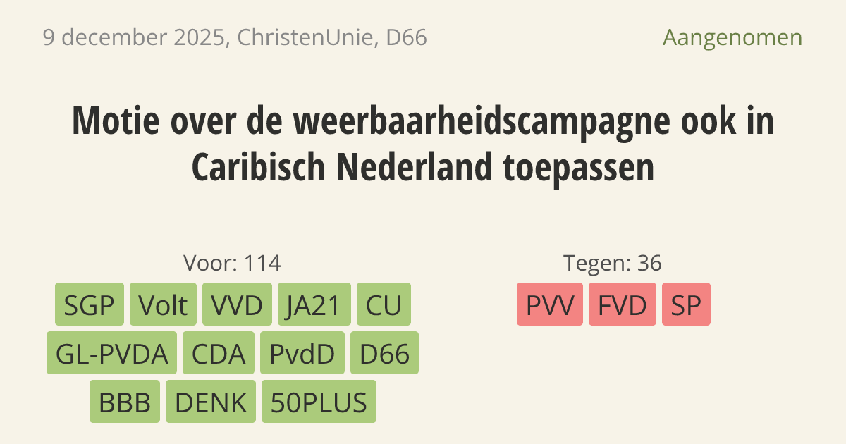 constaterende dat voor Caribisch Nederland geen publiekscampagne voor