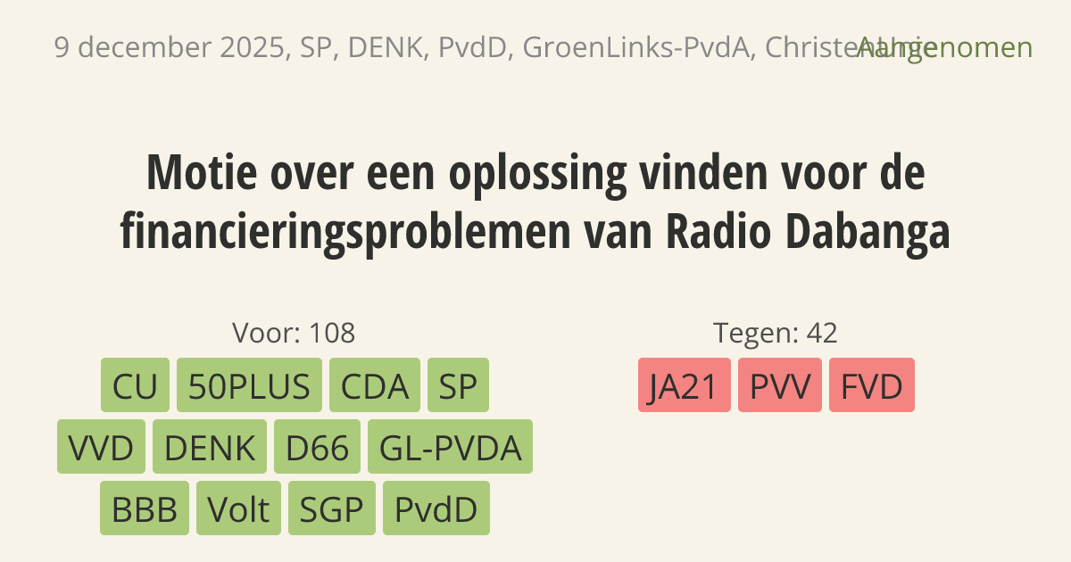 Motie van het lid Dobbe c.s. over een oplossing vinden voor de financieringsproblemen van Radio Dabanga