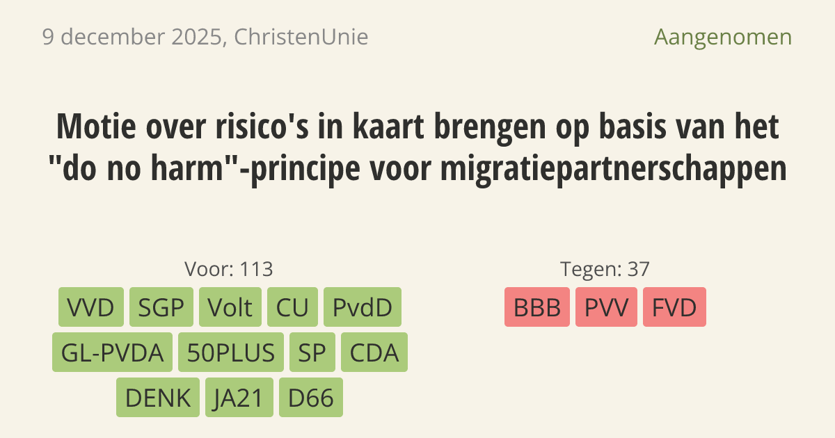 Aangenomen op 16 december: 113 - 37