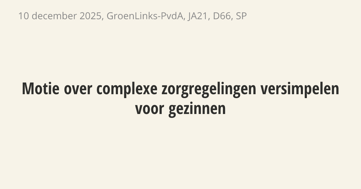 Motie van het lid Westerveld c.s. over complexe zorgregelingen versimpelen voor gezinnen