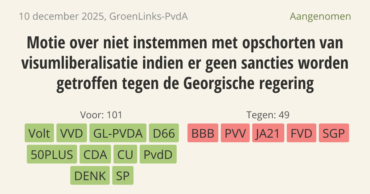De regering mag niet instemmen met het intrekken van de visumvrijheid voor de Georgische bevolking als er geen sancties tegen de Georgische regering komen. De bevolking demonstreert juist tegen de groeiende onderdrukking en het geweld door hun eigen overheid. Het is onterecht om de burgers te straffen voor acties waar alleen de Georgische regering verantwoordelijk voor is.