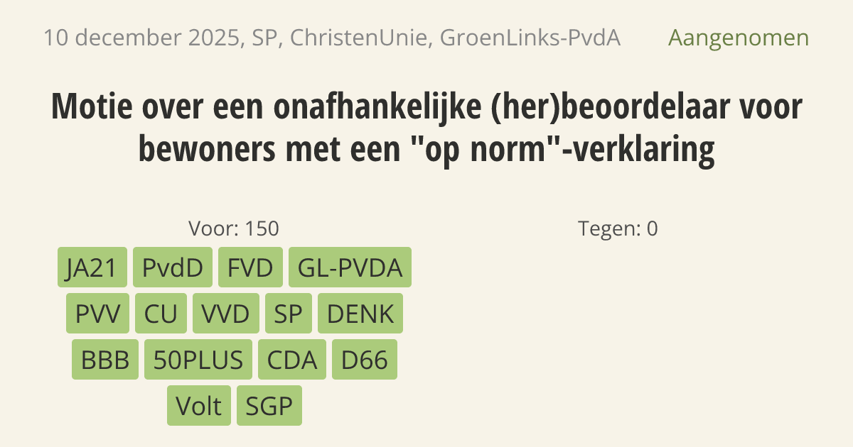 Aangenomen op 16 december: 150 - 0