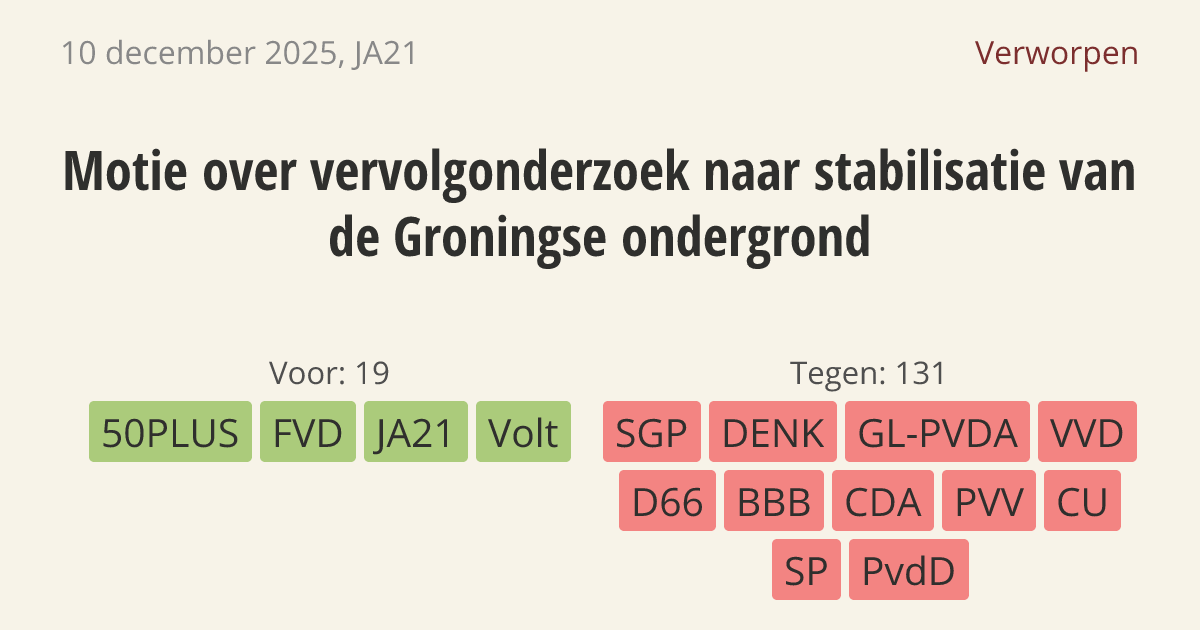 Verworpen op 16 december: 19 - 131