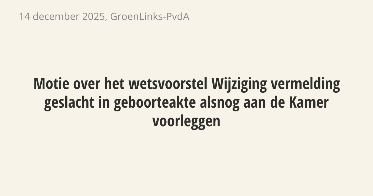 geboorteakte alsnog voor bespreking aan de Kamer voor te leggen en