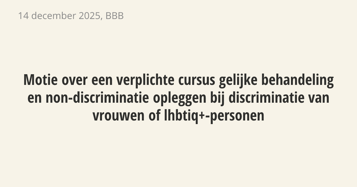 De regering moet de wet aanpassen zodat rechters daders van discriminatie kunnen verplichten om een cursus over gelijke behandeling te volgen. De acceptatie en veiligheid van vrouwen en lhbtiq+-personen staan namelijk onder druk. De huidige aanpak richt zich te veel op reclamecampagnes en te weinig op de bescherming van slachtoffers en het aanpakken van daders.