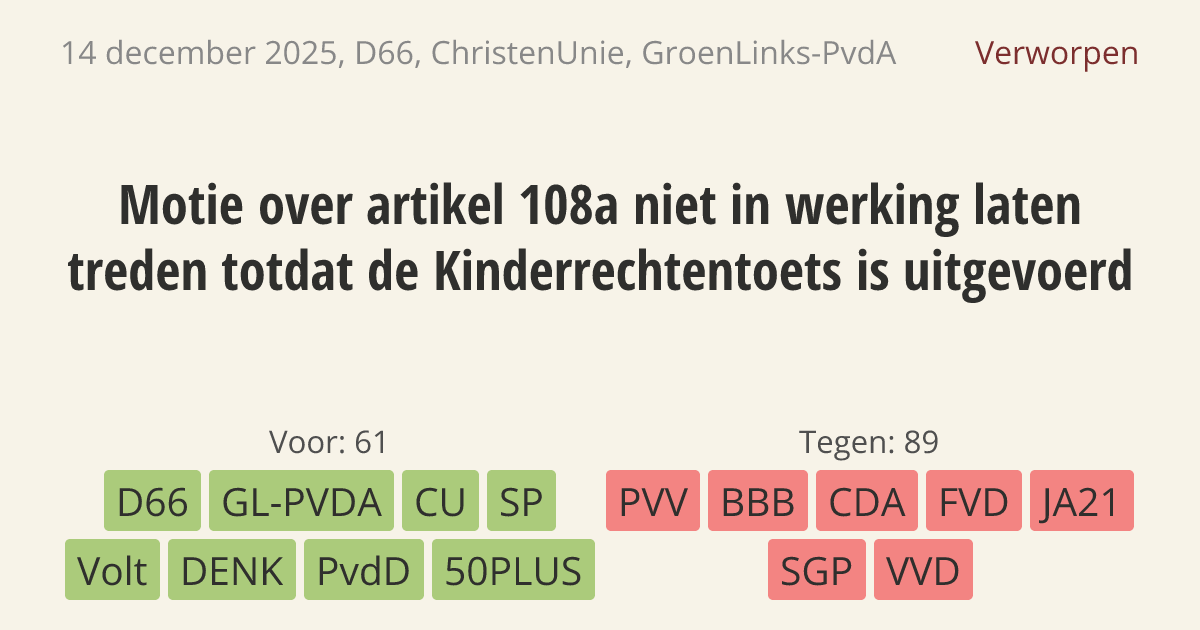 108a niet in werking te laten treden totdat deze Kinderrechtentoets is