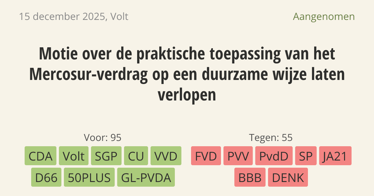 Aangenomen op 17 december: 95 - 55