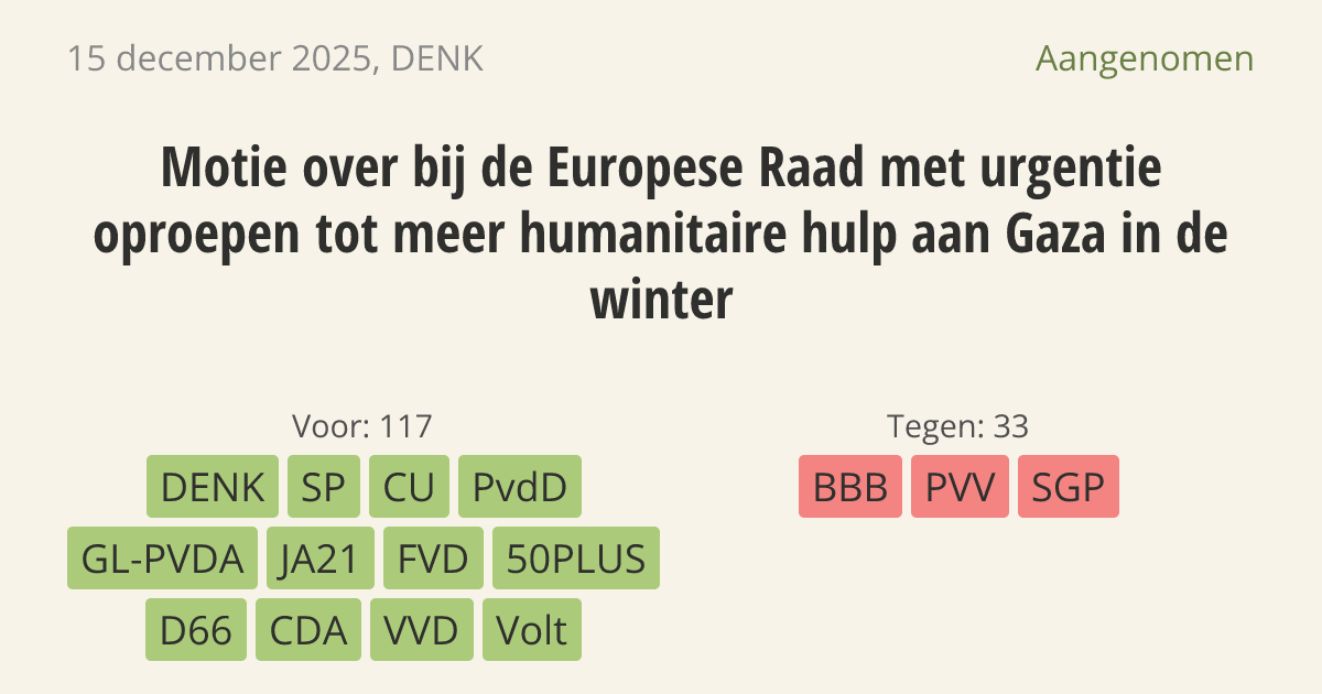Motie van het lid Van Baarle over bij de Europese Raad met urgentie oproepen tot meer humanitaire hulp aan Gaza in de winter