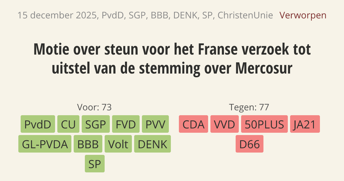 Verworpen op 17 december: 73 - 77