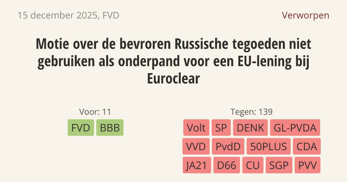 Motie van het lid Dekker over de bevroren Russische tegoeden niet gebruiken als onderpand voor een EU-lening bij Euroclear