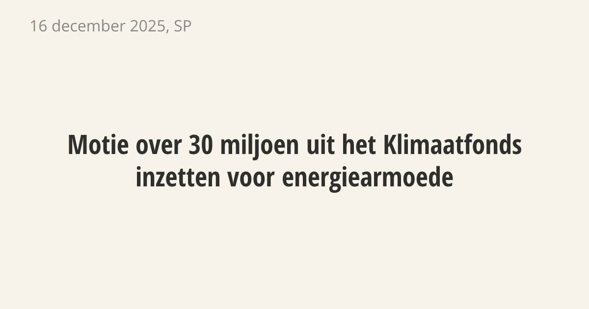 De regering moet 30 miljoen euro extra aan gemeenten geven om mensen met een laag inkomen te helpen bij hun energiekosten. De armoede in Nederland stijgt momenteel doordat de eerdere energietoeslag is gestopt. Met dit geld uit het Klimaatfonds kunnen gemeenten huishoudens ondersteunen die hun energierekening niet meer kunnen betalen.