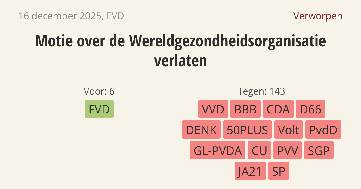 Motie van het lid Van Houwelingen over de Wereldgezondheidsorganisatie verlaten