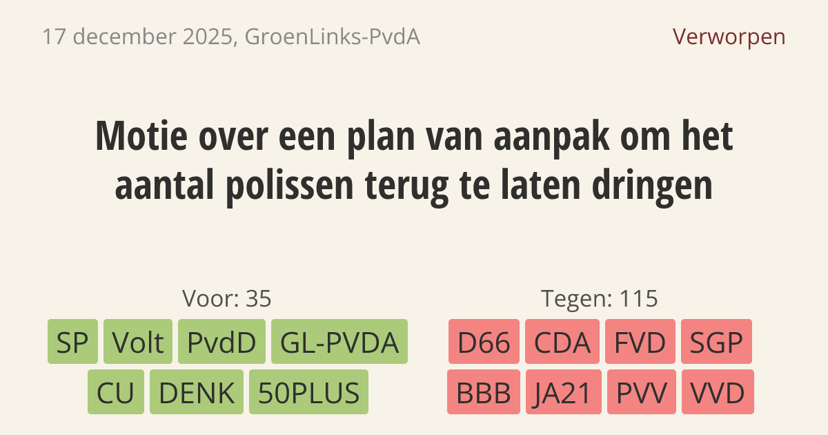 constaterende dat er voor komend jaar maar liefst 59 polissen zijn en dat