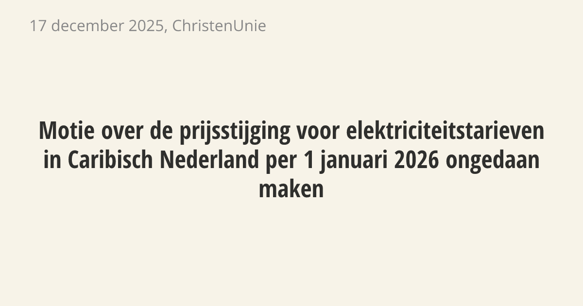 Motie van het lid Ceder over de prijsstijging voor elektriciteitstarieven in Caribisch Nederland per 1 januari 2026 ongedaan maken