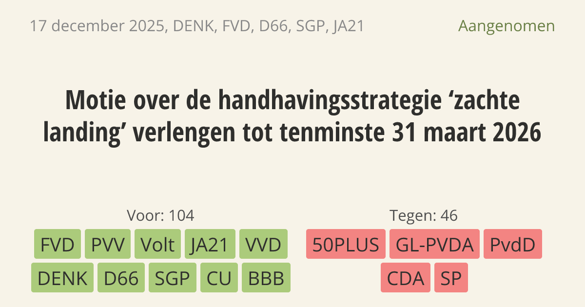 Motie van het lid Ergin c.s. over de handhavingsstrategie ‘zachte landing’ verlengen tot tenminste 31 maart 2026