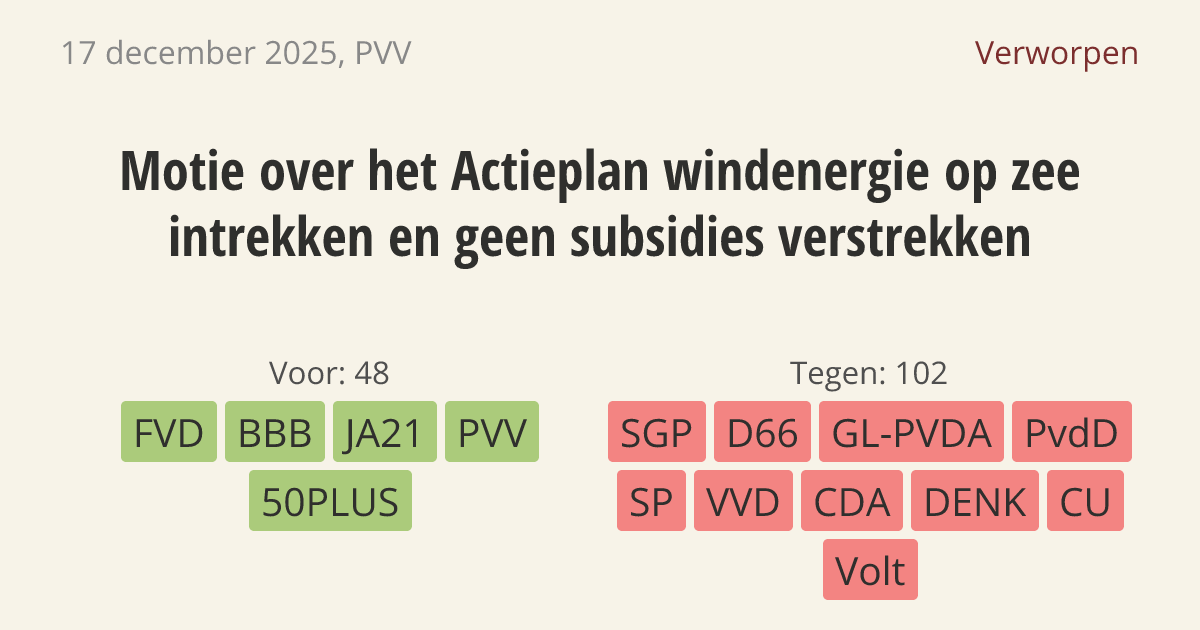Verworpen op 18 december: 48 - 102
