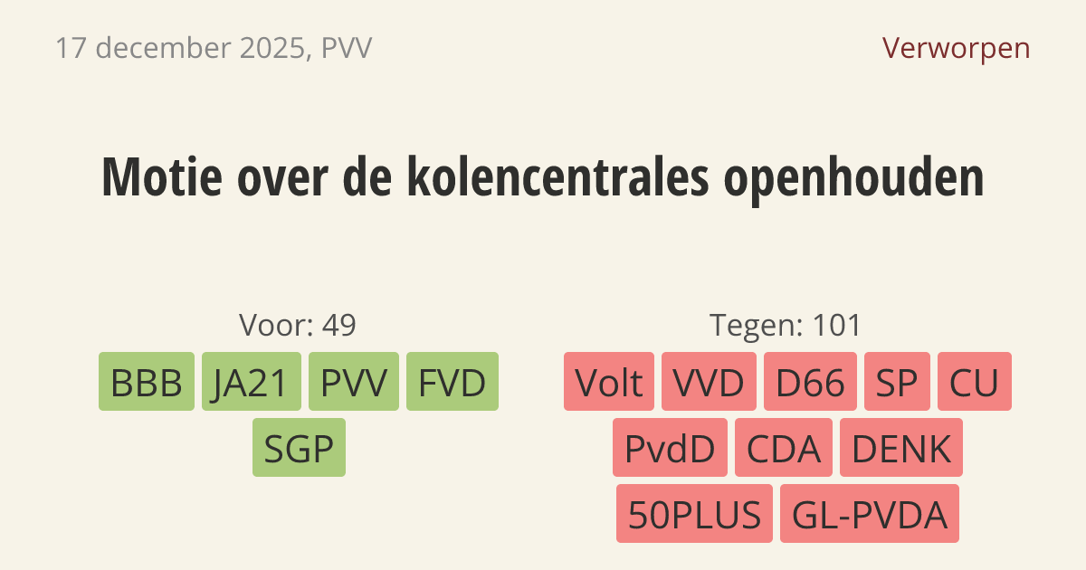 Verworpen op 18 december: 49 - 101