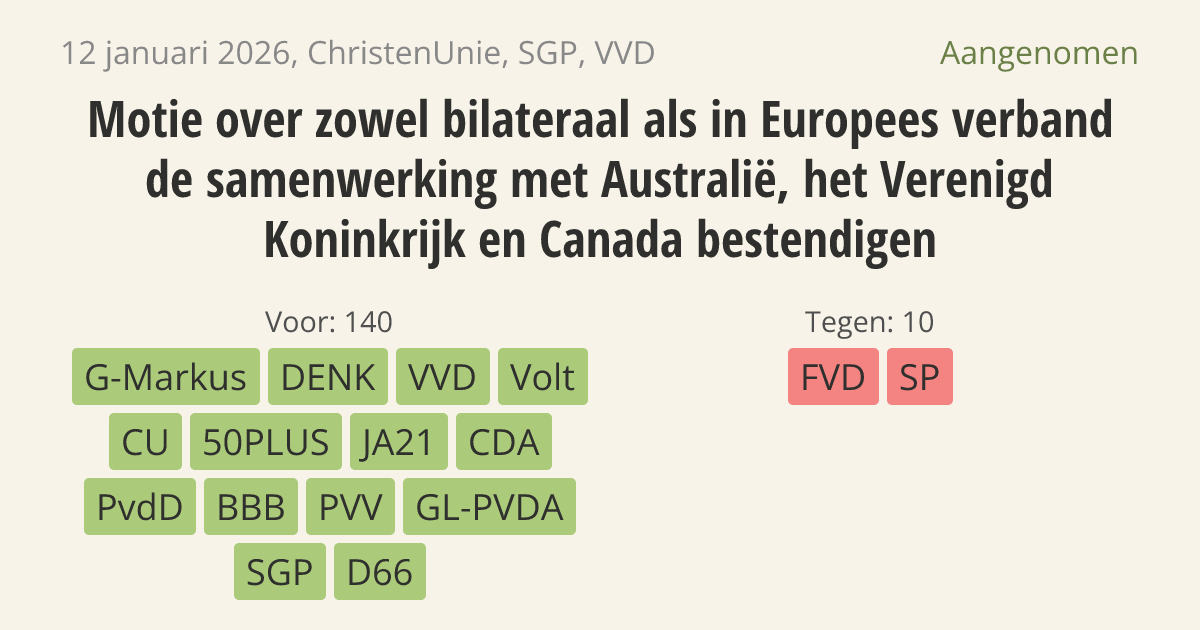 Aangenomen op 20 januari: 140 - 10