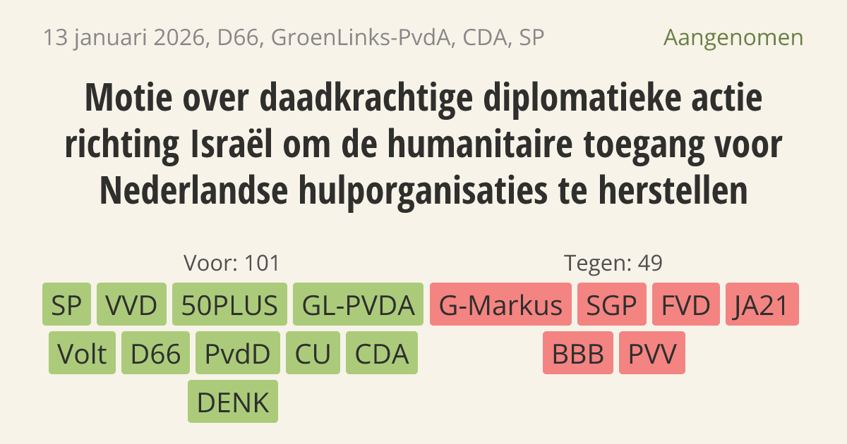 Aangenomen op 20 januari: 101 - 49