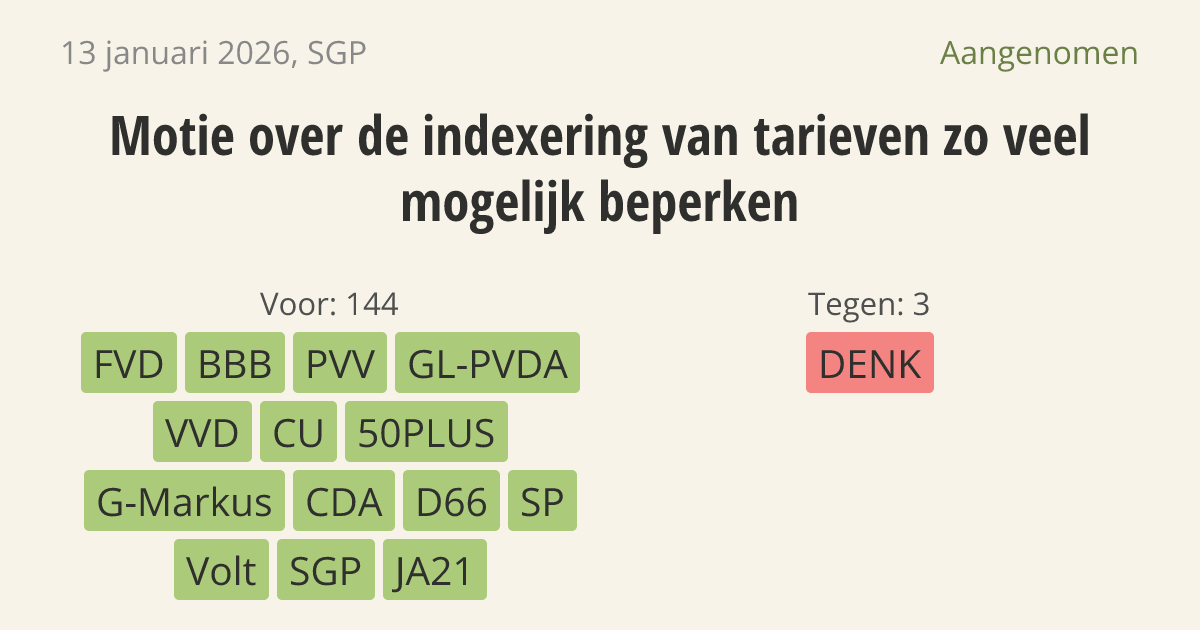 Aangenomen op 27 januari: 144 - 3