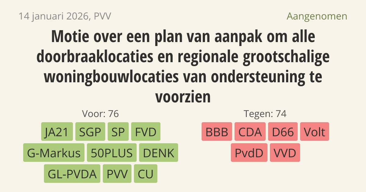 Aangenomen op 20 januari: 76 - 74