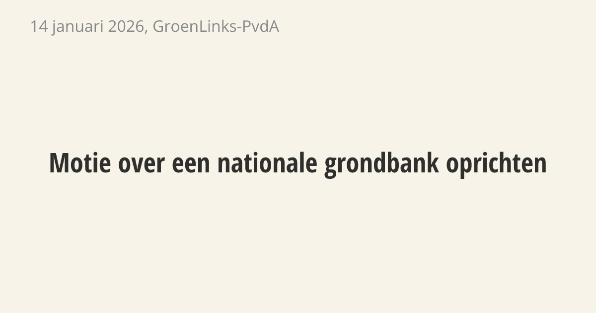 De regering moet samen met gemeenten en provincies een nationale grondbank oprichten. Deze bank moet grond kopen en uitgeven voor maatschappelijke doelen zoals woningbouw. Nu zijn grondprijzen vaak te hoog en zorgt handel in grond voor vertraging bij het bouwen van huizen en de overstap naar schone energie.