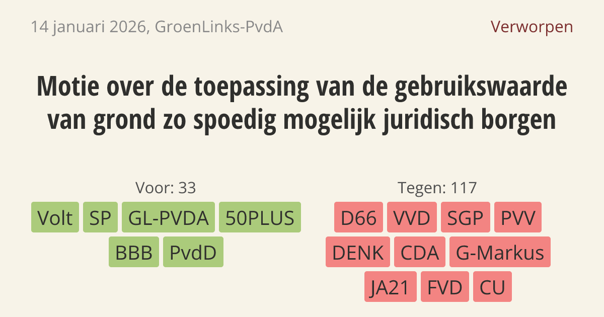 Motie van het lid Zalinyan over de toepassing van de gebruikswaarde van grond zo spoedig mogelijk juridisch borgen