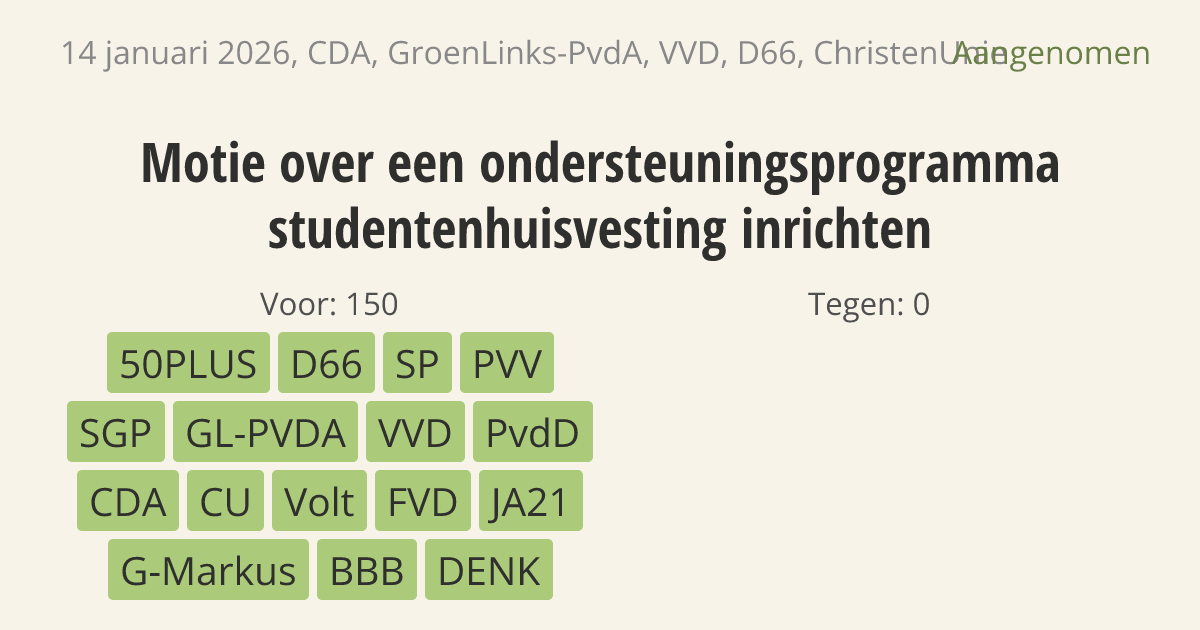 verzoekt het kabinet een ondersteuningsprogramma studentenhuisvesting